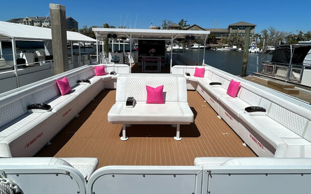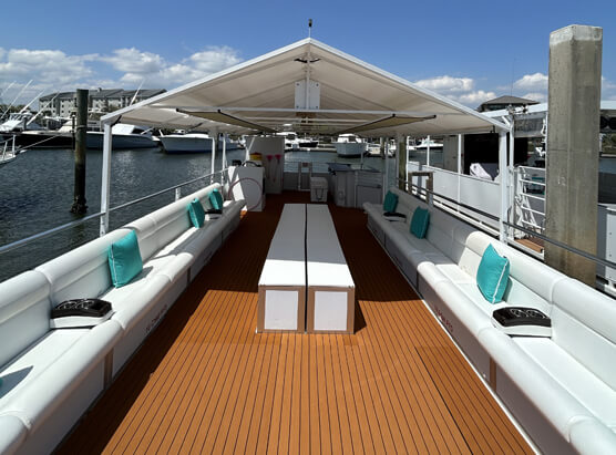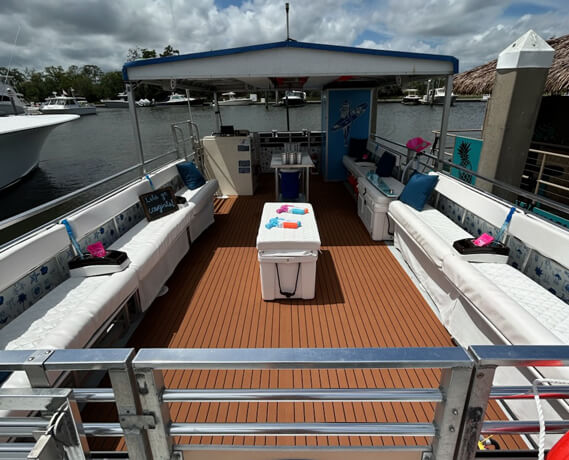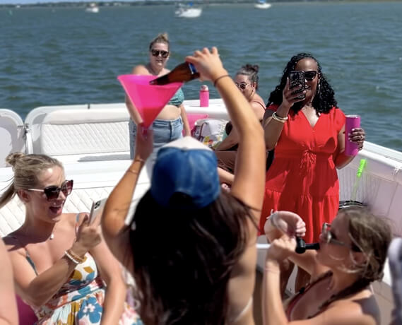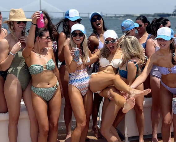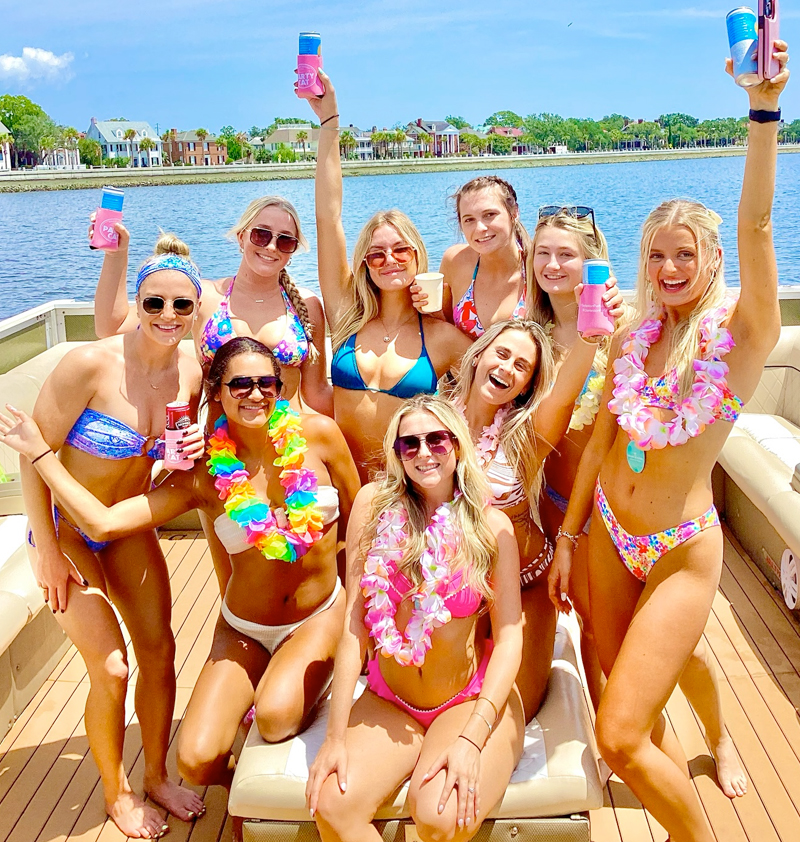 Choose from our fleet of Charleston party boats to find the perfect fit for your group. Get picked up and step aboard one of our spacious, floating party boats featuring a state-of-the-art sound system, a friendly host, and a BYOB setup with plenty of cooler space, ice, and water provided.